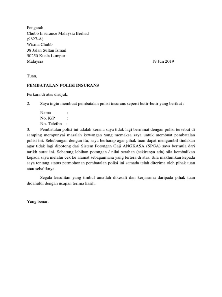 Surat Pembatalan Polisi Insurans Pdf